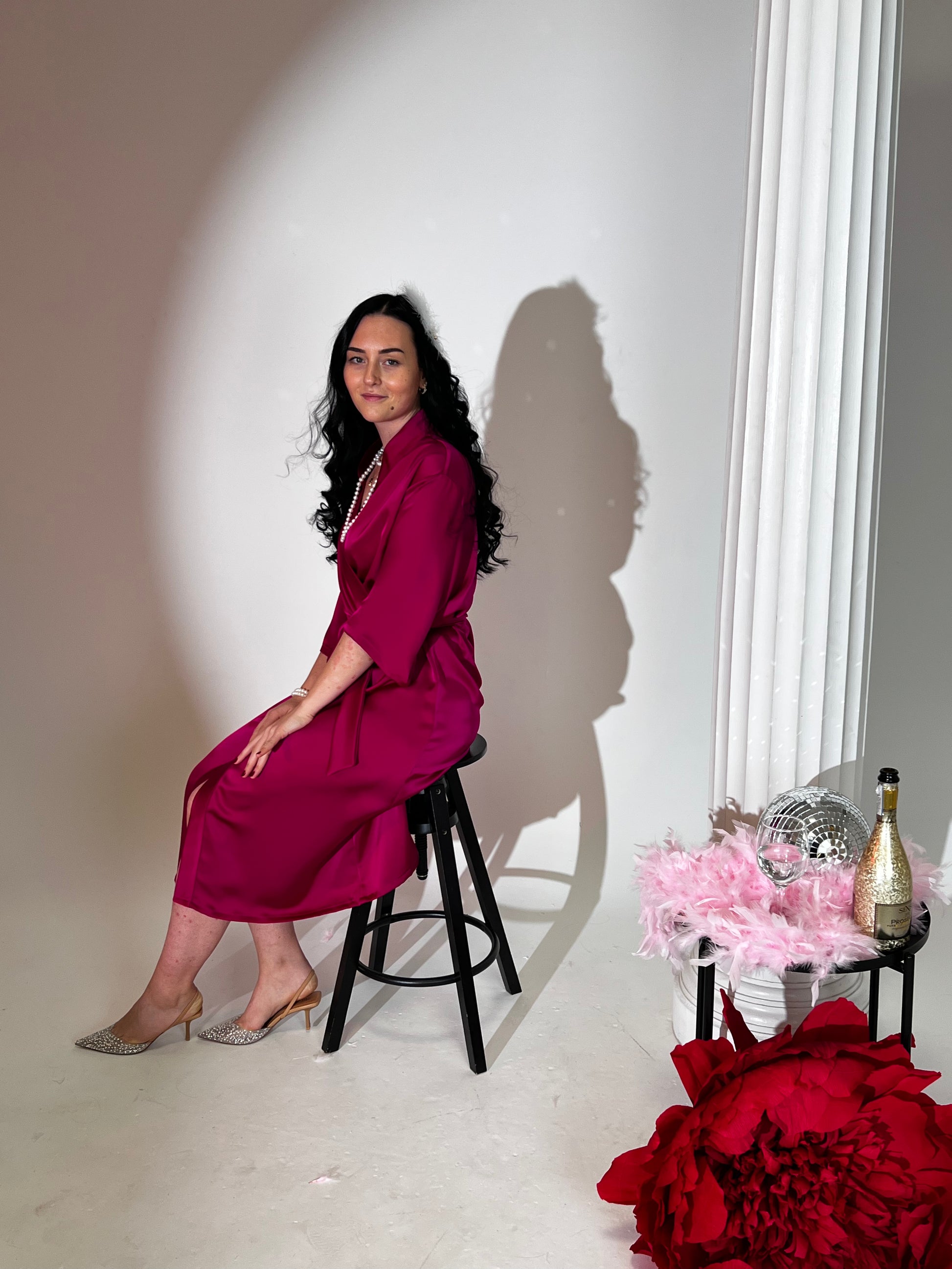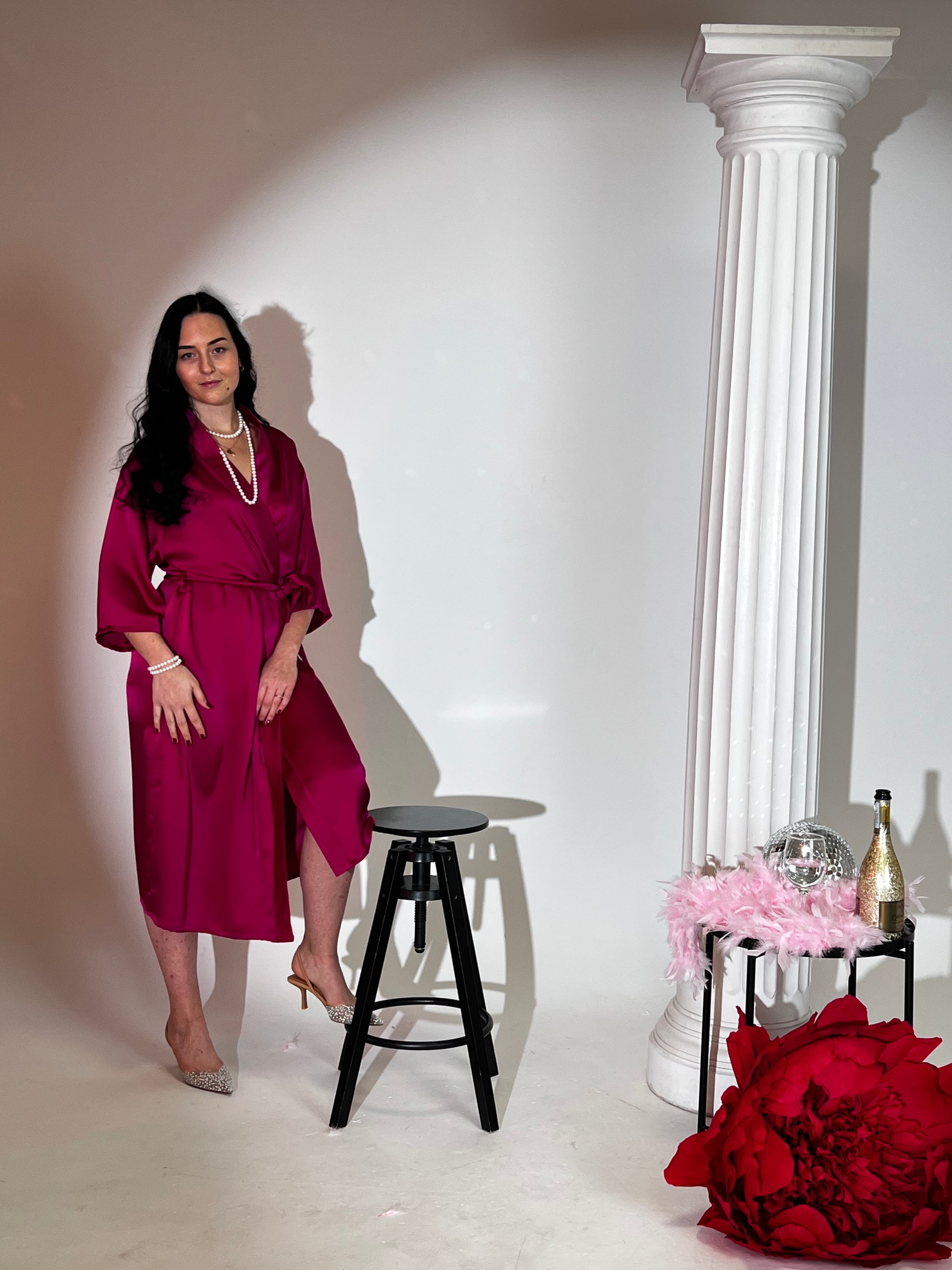 Deep Fuchsia Satin-Finish Robe – Luxury Faux Silk Loungewear for Women